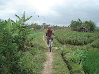namun jalur yang berbeda. RHD sempat terjungkal, terjerembab dengan sukses merangkul pematang sawah karena bertukar sepeda dengan Gde. Pak Agung tetap setia ditemani oleh “telur” di lutut kirinya. Gde sukses menikmati perjalanan ini dengan aman dan sukses minjem AX2.0. Enak ya, De? Overall, semua lelah namun senang karena semua target telah tercapai. Cape deehh…..